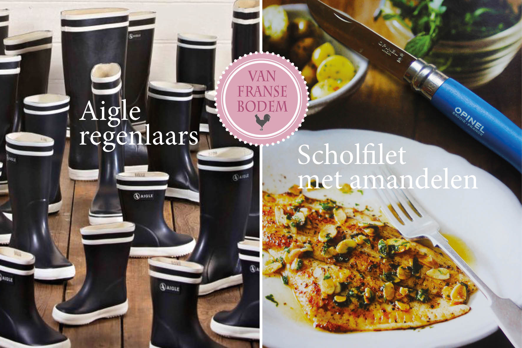 Aigle regenlaars in combinatie met scholfilet met amandelen.