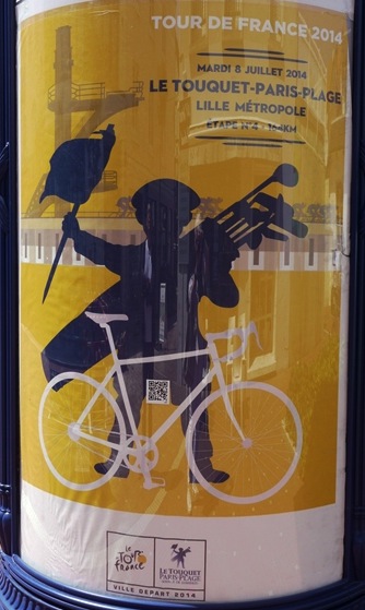 Om de Tour de France alvast aan te kondigen hangen deze posters in Le Touquet. Op de poster een caddy, het symbool, sinds 1925, van Le Touquet. Gemaakt door Edouard Courchinioux, een reclame illustrator uit Parijs. Nu vind je de afbeelding van de caddy terug op polo’s, shirt’s en zoals hieronder op de strandhuisjes van Le Touquet.