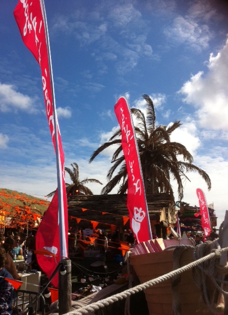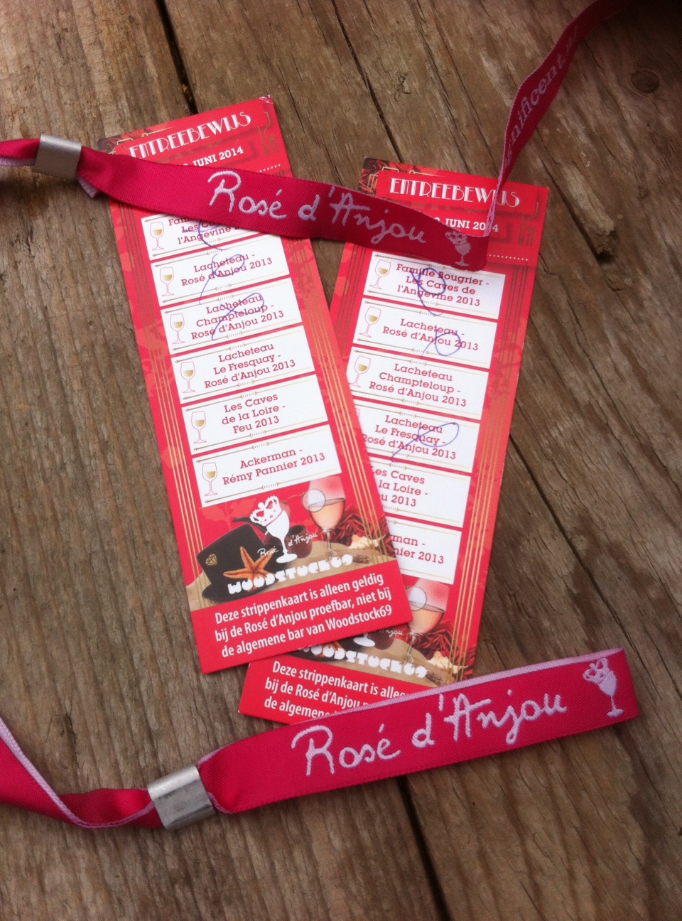 Het is een stralend mooie dag. En we boffen, want we rijden richting Bloemendaal aan zee. Daar is de proeverij van de Rosé d’Anjou wijnen. Een wijn uit de Loire streek in Frankrijk. Op het strand en wel bij Woodstock 69 is het een ontzettend gezellige boel. Veel jongelui, harde muziek en het stralende zonnetje verwelkomen ook ons. We krijgen een bandje om en een soort strippenkaart.