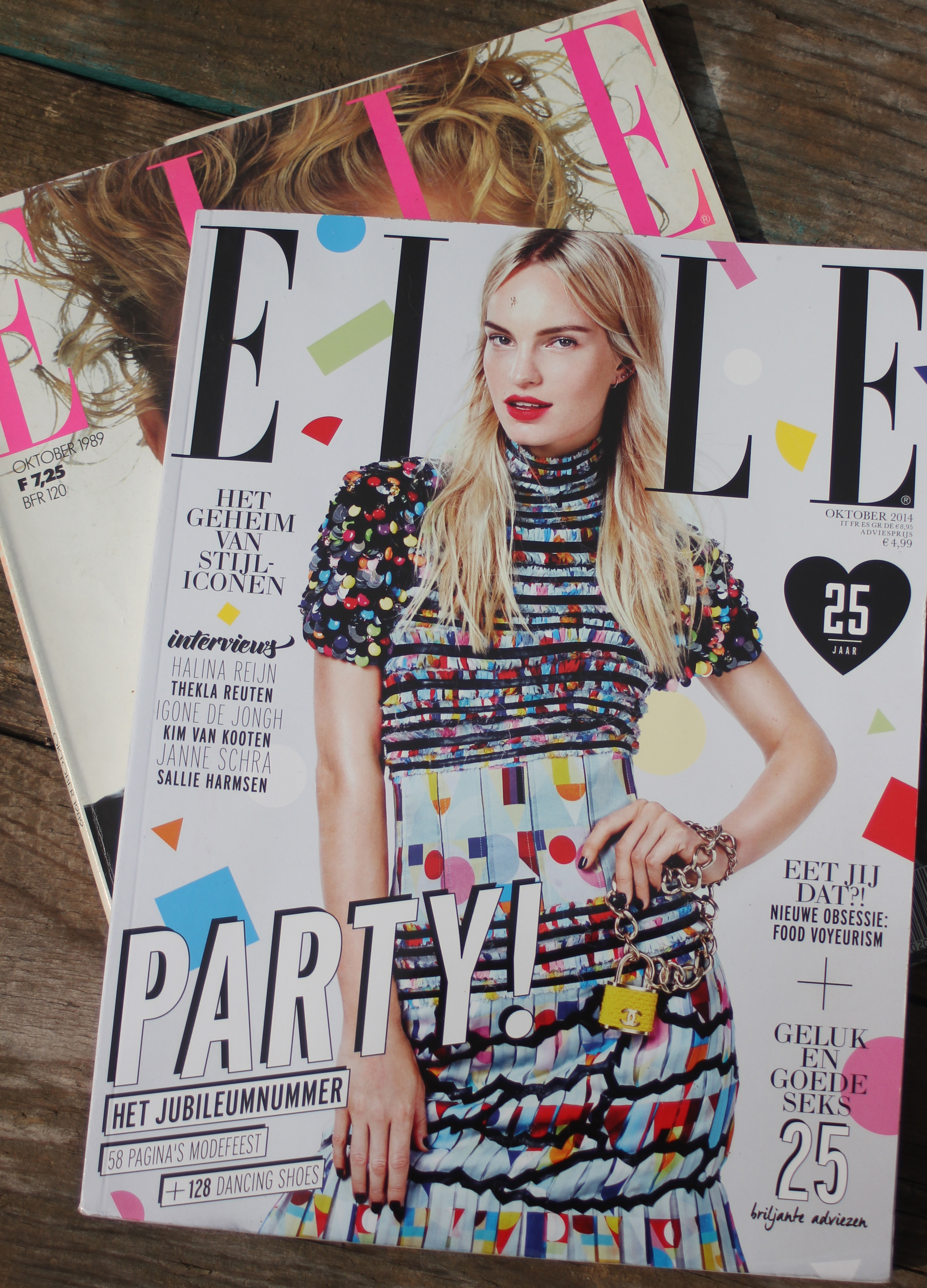 Het modemagazine ELLE bestaat deze maand 25 jaar in Nederland. Een feestje waard voor deze super modeglossy. Het jubileumnummer staat daarom ook vol met partygerichte artikelen zoals dancing shoes en feestjurken. Ik kocht het allereerste Nederlandse nummer dus 25 jaar geleden en al die tijd keurig bewaard in de salontafel die vol zit met allerhande magazines.
