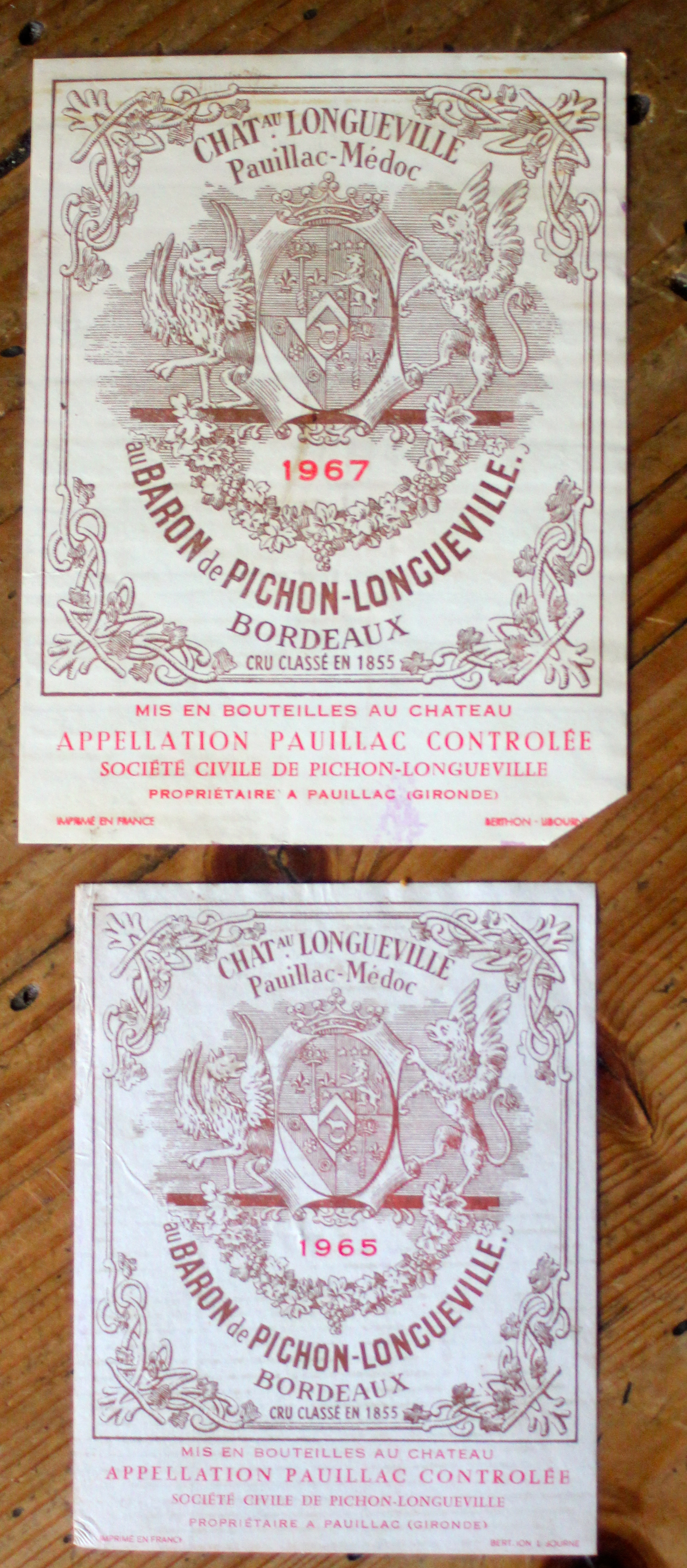 5. De eventuele classificatie, dit heb je alleen bij Haut-Medoc wijnen uit Frankrijk, je hebt onder andere Grand Cru Classé, Cru Bourgeois en Cru Artisan. Wanneer een wijn die classificatie krijgt zullen ze dat ook bijna altijd op hun wijnetiket vermelden, zoals op deze oude etiketten van Chateau Pichon Longueville.
