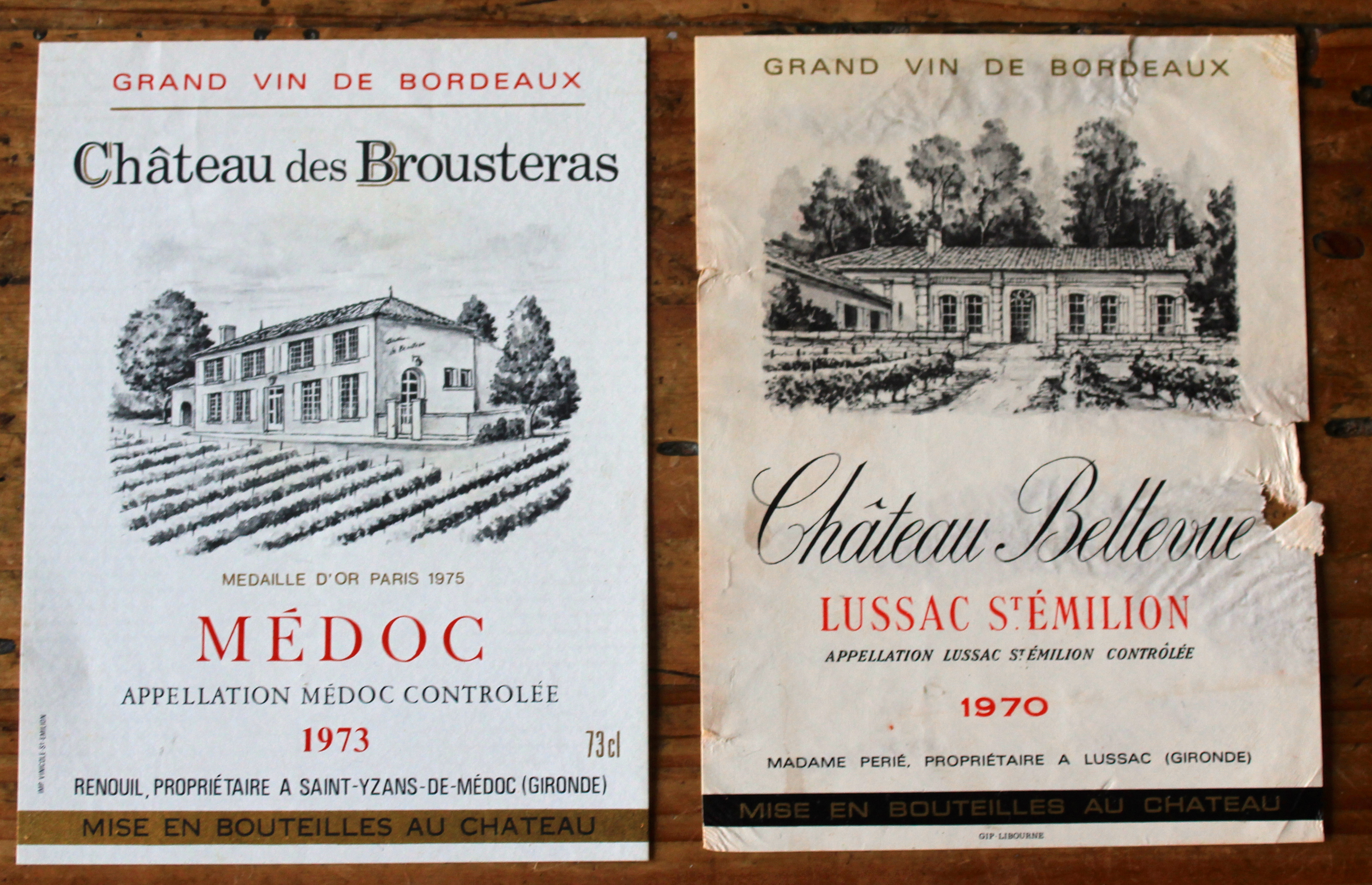 6. De naam en vestigingsplaats van de eigenaar van de wijn. Zoals hieronder Renouil uit Saint-Yzans de Medoc. Bovenop beide wijnetiketten staat Grand vin de Bordeaux, dit zegt helemaal niets over de kwaliteit van de wijn, het is eerder bladvulling en staat wel leuk op het etiket.