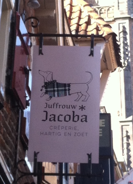 In de loop van de week daarop ging ik langs bij Juffrouw Jacoba in Amersfoort. De foto’s die ik gemaakt had voor het blogartikel over hun mooie zaak vonden de dames goed genoeg om op hun website te gaan plaatsen. Als tegenprestatie mocht ik wat lekkers komen nuttigen in hun winkeltje. Ik heb daar de zalige galette Breton gegeten, echt een aanrader. Een dun knapperig “pannenkoekje” met ham, spiegelei en kaas. Verrukkelijk gewoon. Wel vonden de dames dat als ik nog eens langskwam, de crêpe caramel ook moest proberen. Goh, weer een rede om langs te gaan bij Juffrouw Jacoba. Vinden wij niet erg.