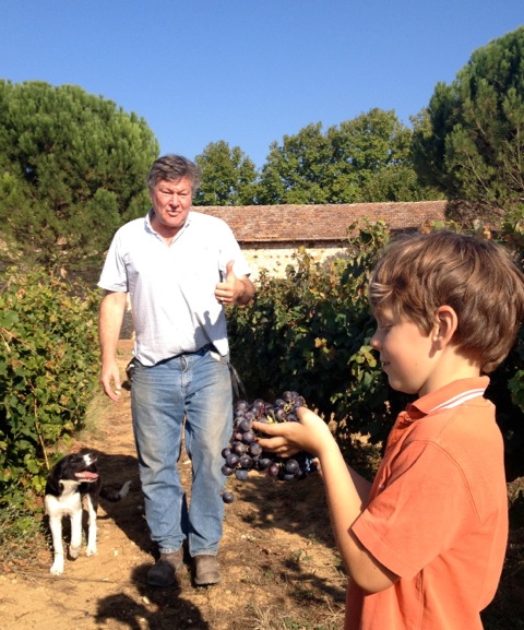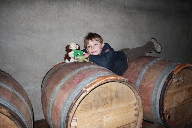 Opgroeien op een wijnboerderij is een groot voorrecht; Rafael poseert hier met zijn knuffel op de wijn die vernoemd is naar ‘Opa Skip’, de vader van Rutger: Cuvée Henry