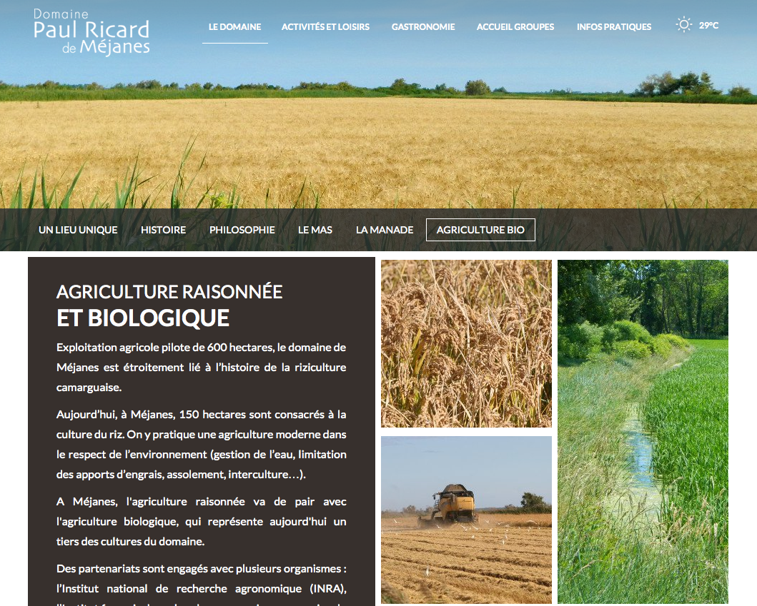 De melk van die koeien gaat naar de schoolkinderen in Marseille. Het bedrijf groeit en hij laat een irrigatiesysteem aanleggen. Daardoor kon Paul Ricard na de oorlog starten met het verbouwen van rijst op grote schaal, de bekende Camargue rijst. Het Domaine Paul Ricard de Méjanes wordt een voorbeeld voor het verbouwen van deze rijst en vandaag de dag wordt er in de Camargue op zo’n 20.000 hectare rijst verbouwd. Het Domaine is nog steeds een ‘boeren’ bedrijf, maar tegenwoordig laten ze ook toeristen toe en zijn er allerlei activiteiten te doen. Met dit achtergrondverhaal toch zeker een bezoekje waard, mocht je de Provence bezoeken. Meer info over dit Domaine: http://www.mejanes-camargue.fr