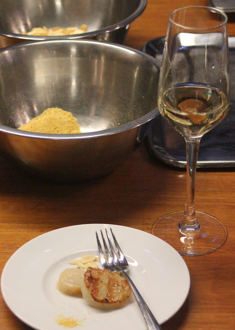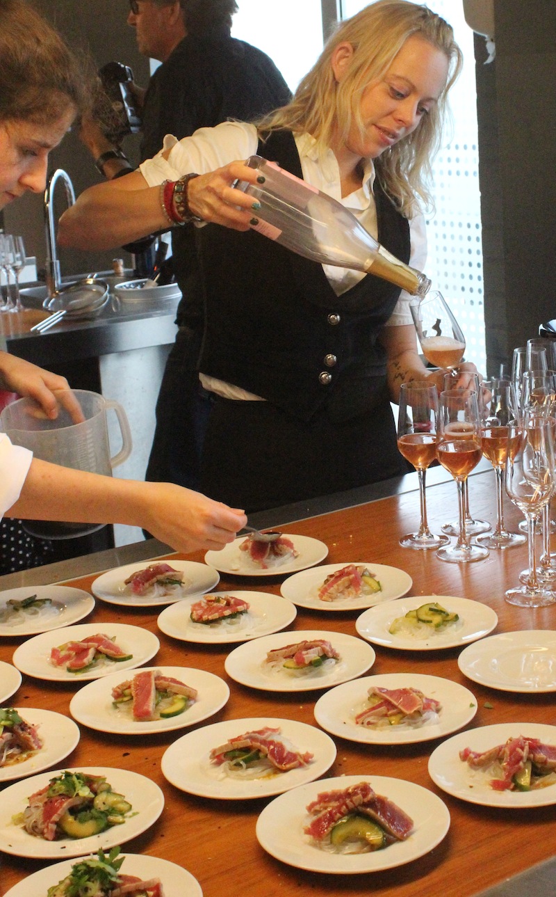 Dat laatste heb ik afgelopen maandag mogen proeven en beleven. Zo dronk ik onder andere een geweldige Champagne Blanc de Noirs uit 2006 bij nog roze runderlende met wat gemberjus, een Blanc de Blancs uit 2002 bij een licht gegrilde coquilles met een weinig gebrande amandel en poeder van gedroogde citroenschil, een Champagne Rosé bij gegrilde tonijn met sesamzaadjes en een Champagne Pinot Noir-Meunier-Chardonnay bij licht gebakken zeebaars op een bedje van asperges en puree van erwten.