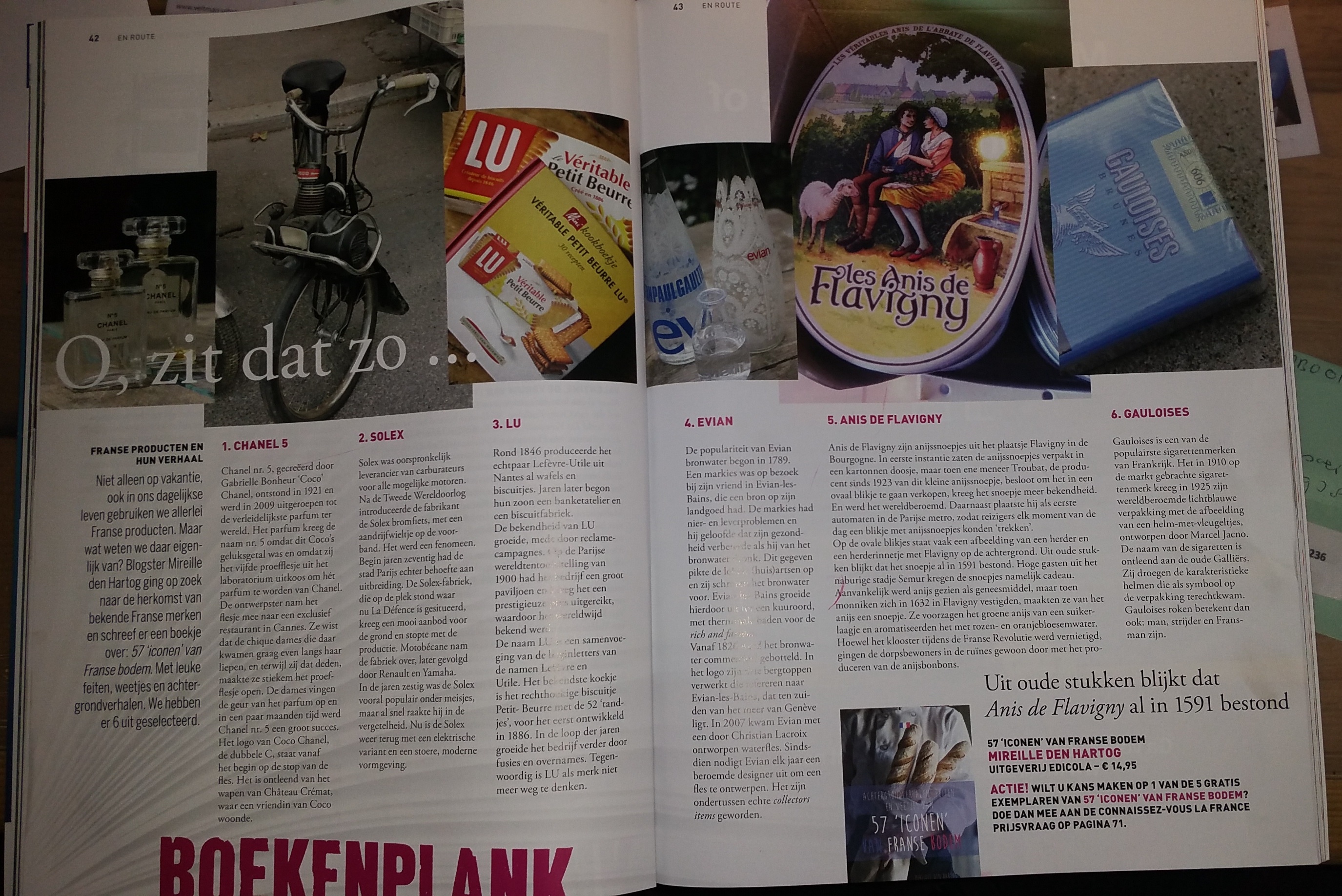 Een boek uitbrengen is leuk maar als het niet gelezen c.q. verkocht wordt ja wat heb je er dan aan. Je moet dus met je boek ‘de boer op’. Stukje marketing heet dat. Dat doe ik natuurlijk niet alleen. Mijn uitgever heeft fantastische kanalen en wegen om dat stukje marketing uit te voeren. Met gepaste trots kan ik zeggen dat in maar liefst 2 Frankrijk magazines, met enige reputatie hier in Nederland, mijn boek een publicatie gekregen heeft. In het En Route Magazine staat 57 ‘iconen’ van Franse bodem zelfs met een hele spread. Leuke bijkomstigheid hierbij is, dat degene die het blad En Route nu opmaakt, mijn stagebegeleider was tijdens mijn stage die ik liep bij een reclamebureau in Baarn. Wat is de wereld toch klein!