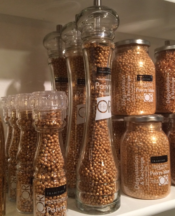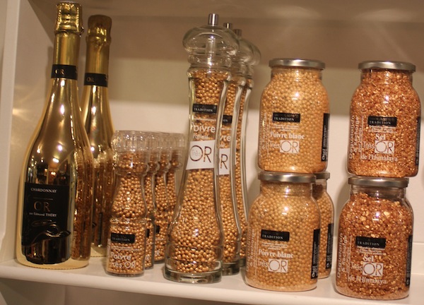 Naast het zout bestaat er ook peper van ‘goud’. Het wordt geproduceerd door de Groupe Savor Creations in Six-Fours- Les- Plages. Het zout en de peper behoren bij de collectie Très Or. De gouden peper & zout is trouwens van Savor & Sens, de collectie heet “Très oR”. In deze collectie zijn nog meer producten die ‘behangen’ zijn met goud.