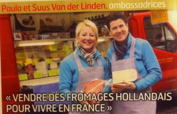 Suus en Paula van der Linden verkopen met hun bedrijf: VAN DER LINDEN Fromage Artisanal Hollandais vanuit de zuid Bourgogne Nederlandse ambachtelijke kazen op de plaatselijke markten en per verzending door geheel Frankrijk. Meer info op: Facebook: https://www.facebook.com/kaasenfrance?fref=ts en http://www.fromagehollandais.vpweb.fr