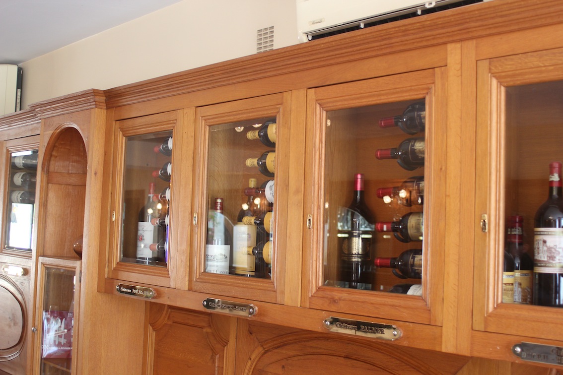 En zo zijn er een kast of 15 gevuld met wijnen van zeer goede chateaus uit de omgeving. Het is een restaurant waar je goed eet voor weinig geld en waar ook de echte Bordelais een hapje komt eten tussen de middag. Een echte Bordelais is bruin van de zon omdat ie veel in de wijngaarden werkt en hij houdt van lekker eten en drinken. Nou en dat laatste kan hier erg goed.