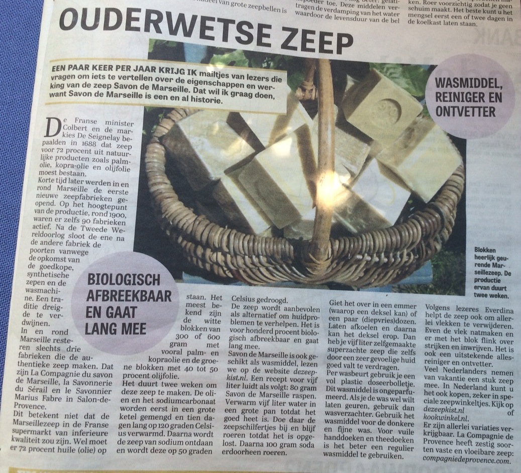 Een krantenartikel inspireerde mij om het blogartikel over Savon de Marseille te ‘herbloggen’. Het mooie van veel van mijn blogartikelen en de iconen die ik daar in beschrijf is dat ze tijdloos zijn en steeds weer ‘op herhaling’ kunnen. Vandaag dus een herblog over Savon de Marseille. Toen ik dat blogartikel schreef combineerde ik mijn iconen nog met een recept. Op zich ook een leuk idee/ concept maar het was lastig om steeds weer het juiste recept of gerecht bij een icoon te zoeken. Daarnaast wordt er al zo veel geschreven en geblogt over recepten dat ik dat uiteindelijk achterwegen heb gelaten. Het icoon Savon de Marseille heeft ook een plek gekregen in mijn boek 57 ‘iconen’ van Franse bodem.