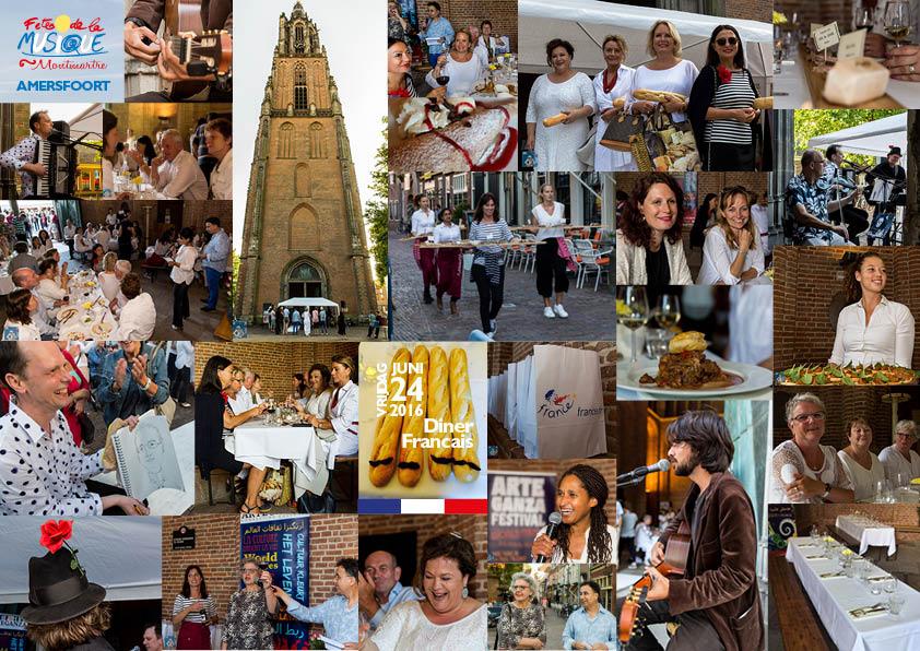 Het is al weer ruim een week geleden, dat het Diner Français in Amersfoort plaatsvond. Op vrijdag 24 juni was er een frans georiënteerd diner, bestaande uit overheerlijke Frans klassieke paté’s van Madame Paté, zalige coq au vin ragout van Bistro ’t Kannetje en als dessert werkelijk verrukkelijke crêpes met ijs van Crêperie Juffrouw Jacoba. En dat alles omlijst met franse muziek en een echte cartoonist.