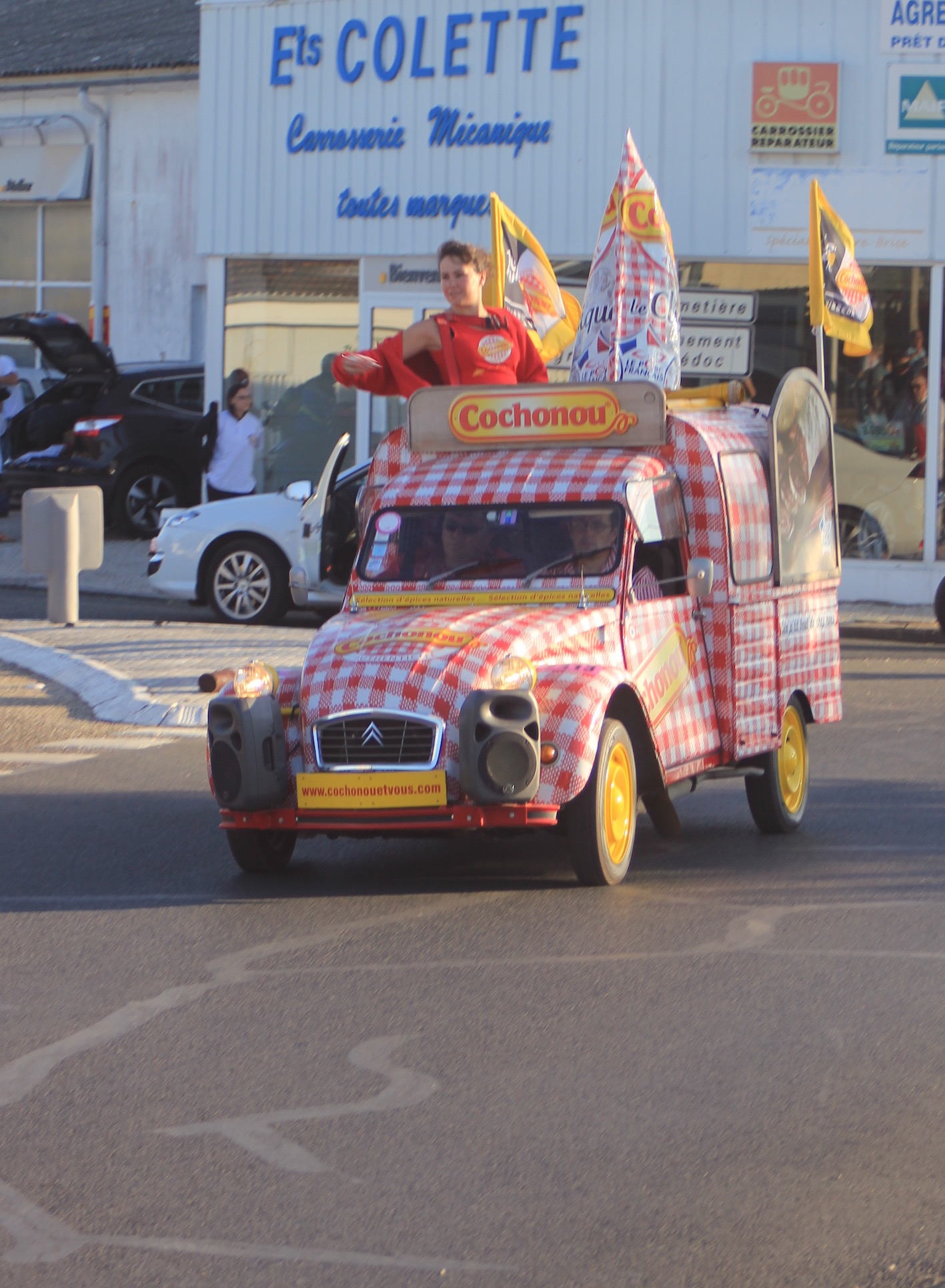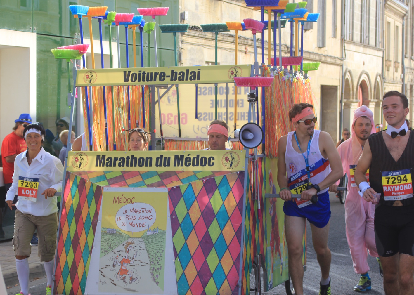 De sfeer is een soort mengeling van carnaval en de Tour de France. De marathon des Châteaux du Médoc heeft wel enige gelijkenis met dit wielerfestijn, omdat ook de marathon start met een caravane publicité. Er wordt veel goed bedoelde rommel uit de gekste auto’s gegooid, waar het publiek als een soort aasgieren op af stormt.