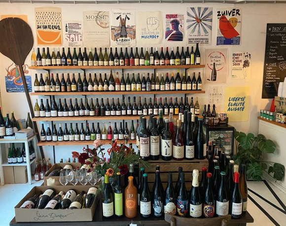 De ruimte is zeer clean ingericht met een toonbank, een groene houten kast en aan de muur hangen planken vol met flessen wijn. Volgens de in Montpellier geboren eigenaresse worden de broden en wijn op dezelfde manier gemaakt. Florence: “De desem bestaat uit natuurlijke gisten die ontstaan door fermentatie. Daarna wordt er bloem, water en een beetje zout toegevoegd. De wijnen die ik verkoop bestaan enkel uit gefermenteerd druivensap.”