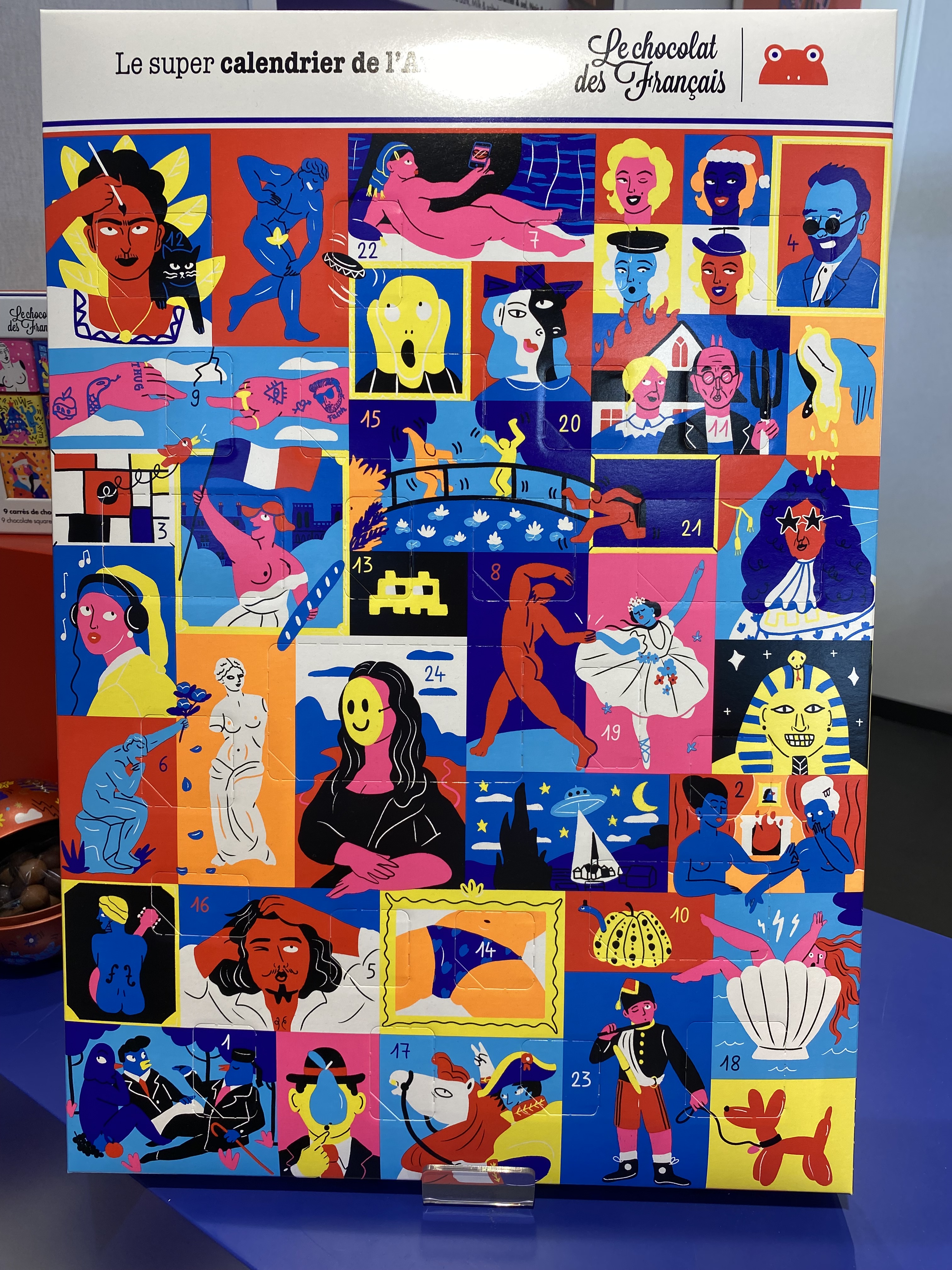 Le Chocolat des Francais heeft dit jaar weer allerlei leuke en lekkere chocoladerepen, ballen, christmas crackers, en kalenders voor kerst gemaakt. De chocolade kerstkalender en de rest van de items hebben illustraties die gebaseerd zijn op allerlei beroemde schilderijen.
