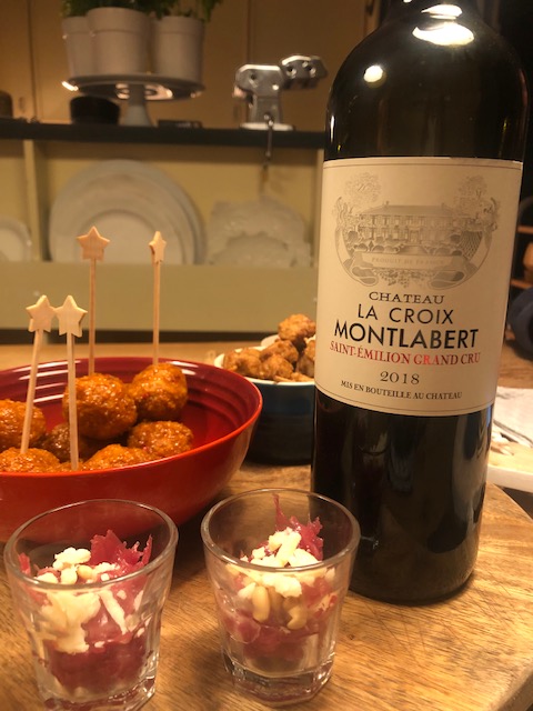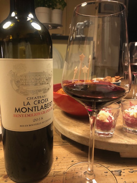 De Château La Croix Montlabert uit de Saint Emilio is mooi van kleur en traant mooi langs het glas. Je ruikt bosvruchten, denk aan bosbessen, wat vanille en nootmuskaat. En je proeft ze ook, al is de afrdronk, de tijd dat je de smaak van de wijn in je mond houdt, matig. Maar na mate de wijn langer open staat wordt ie steeds geuriger en komt de smaak meer los. Een aanrader dus om te doen, de wijn een uur voor dat je hem gaat drinken alvast openen zodat de wijn kan ademen.