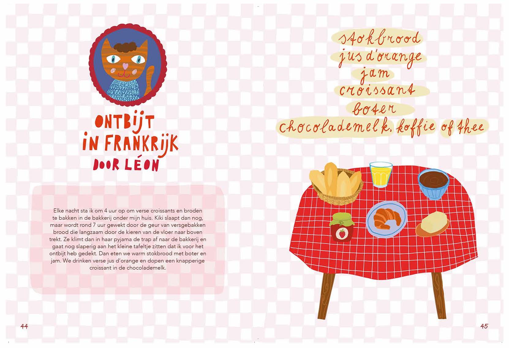 In dit boek gaat Kiki op reis en bezoekt ze haar broertjes en zusjes die verspreid wonen over de wereld. Het boek staat vol geïllustreerde (voor) leesverhalen, recepten en weetjes. Kiki deelt van elk land 5 recepten, vertelt over de gebruiken, over de taal, en haar broertjes en zusjes vertellen wat over het ontbijt in hun land.