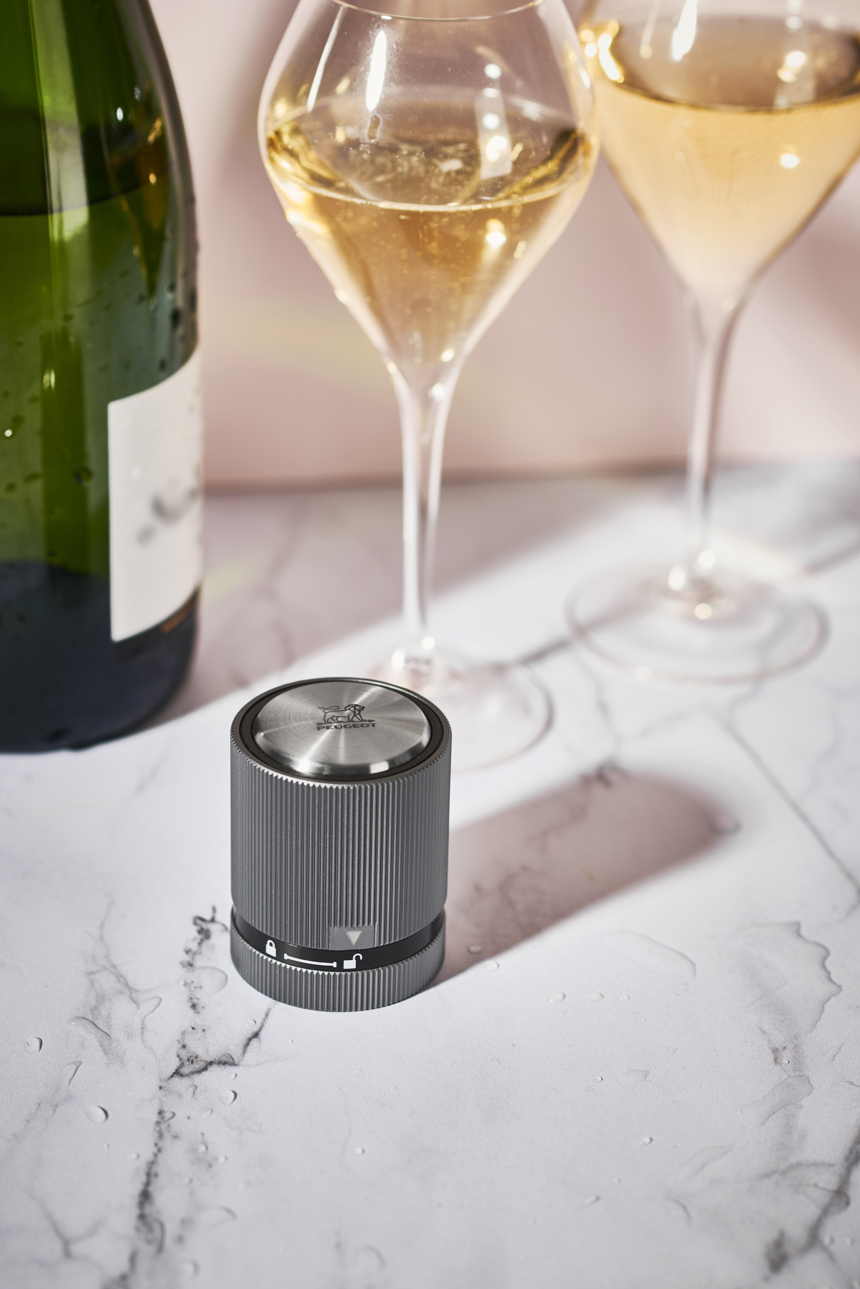 Een mousserende wijn bewaren terwijl de kwaliteit wordt behouden? Dat is erg lastig, eenmaal geopend verliest een mousserende wijn al snel zijn bubbels en smaak. De stijlvolle Line wijndop is speciaal ontworpen om flessen champagne, prosecco, cava of crémant water- en luchtdicht af te sluiten. Hierdoor behoudt de fles wél kleur, smaak en sprankeling. Een onmisbare gadget voor elke liefhebber van mousserende wijnen.