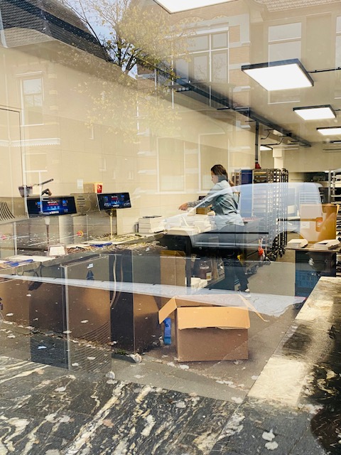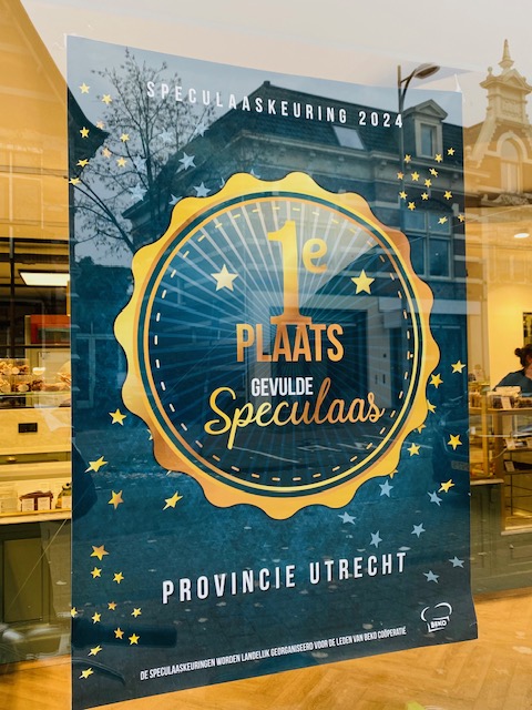 Nadat ik had vernomen dat ze de beste gevulde speculaas van de provincie Utrecht hebben, moest ik natuurlijk even langs bij deze patisserie. Nijtmans in Amersfoort, voor mij ook nog eens een soort thuiswedstrijd. Bij aankomst viel mij al meteen op dat je letterlijk de “bakkerij” in kunt kijken door het grote raam aan de linkerkant. De 2 andere ramen met in het midden de deur is de winkel. Op de deur prijkt de naam Valrhona.