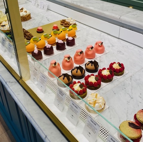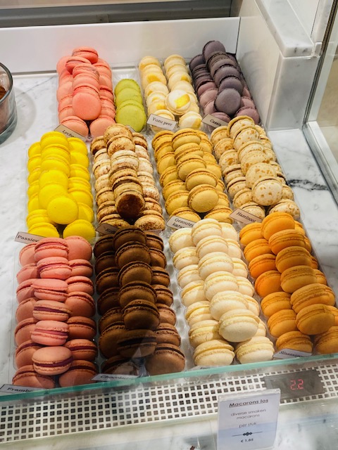 Eenmaal in de winkel lonken de heerlijkheden je tegemoet. Macarons zijn er in veel verschillende smaken, de madeleines kijken je vrolijk aan en de taartjes roepen, neem mij mee.