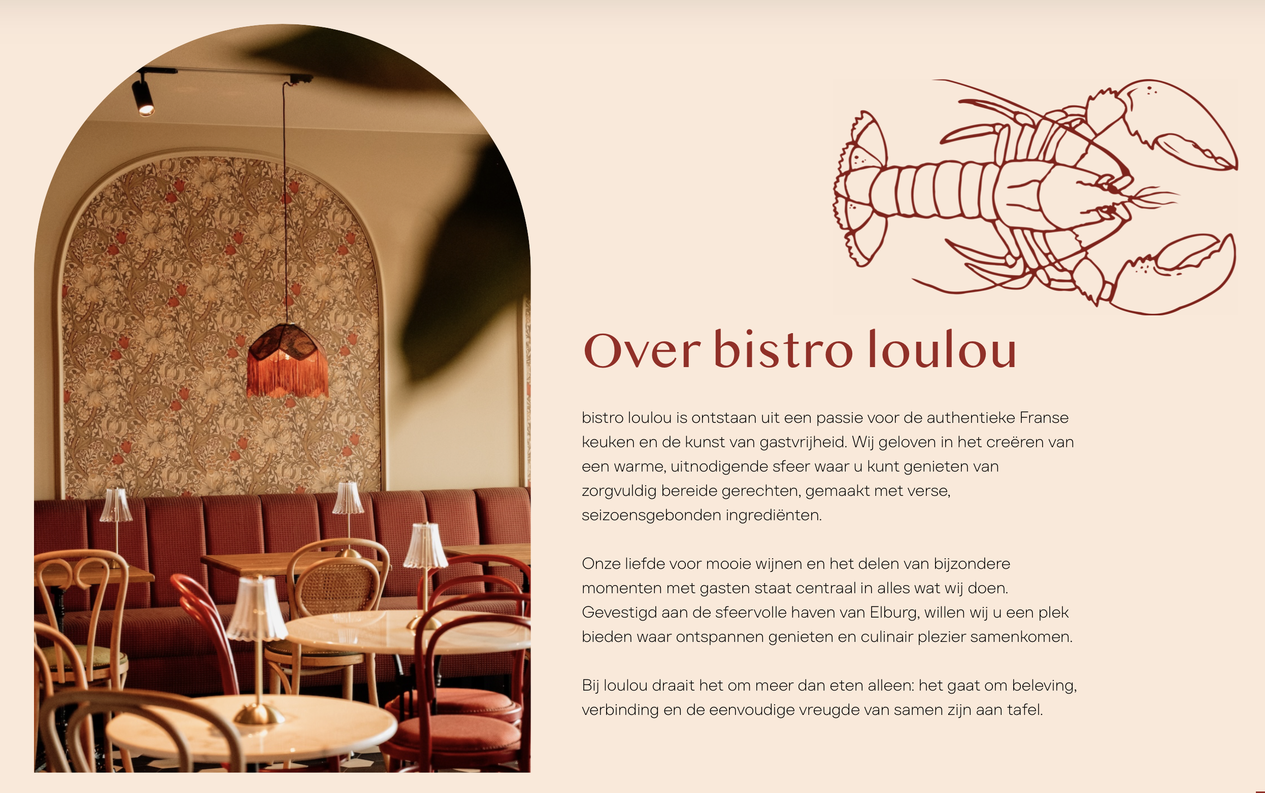 Bij Bistro Loulou proef je de charme van Frankrijk, midden in de historische haven van Elburg. Ze combineren Parijse flair met de traditie uit Provence. Een fles wijn op tafel, goed eten en genieten van gastronomie. daast het diner kan der er ook terecht voor het ontbijt en de lunch. Ook hebben ze eens in de zoveel tijd een tabel d’hôte. Voor 35,- euro p.p. lunch je dan vanaf 14:00 – 18:00 uur heerlijke Franse klassiekers.