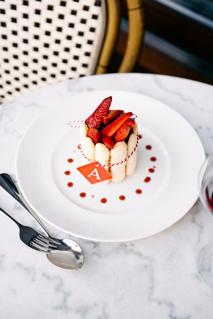 Denk aan Bisque met maïs of Terrine de campagne om mee te beginnen. Geroosterde parelhoen met appels, peren en cider of een Portobello-briegalette met spinazie en gepocheerde dooier als hoofdgerecht. En als dessert? Een klassieke Charlotte met aardbei of Tarte tatin met peren en mokka-chocolade-ijs.