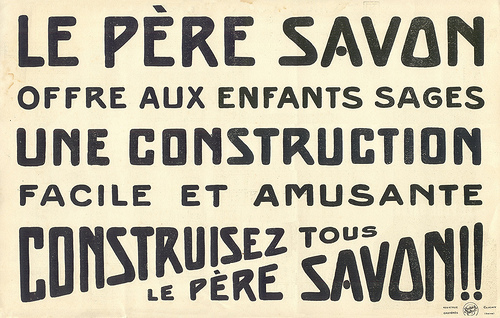 Met een beetje rondsnorren op het net vind je weer het een en ander over een product van Franse bodem. Zo kwam ik deze leuke vintage reclame tegen van Le Père Savon. De zeep komt terug in een artikel wat ik schreef over Savon de Marseille.